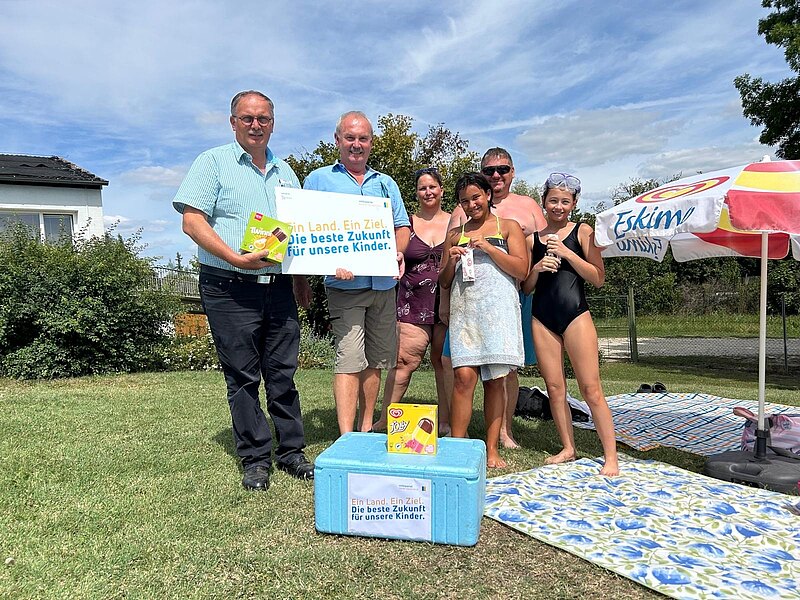 Eisverteilaktion im Freibad Seefeld-Kadolz
